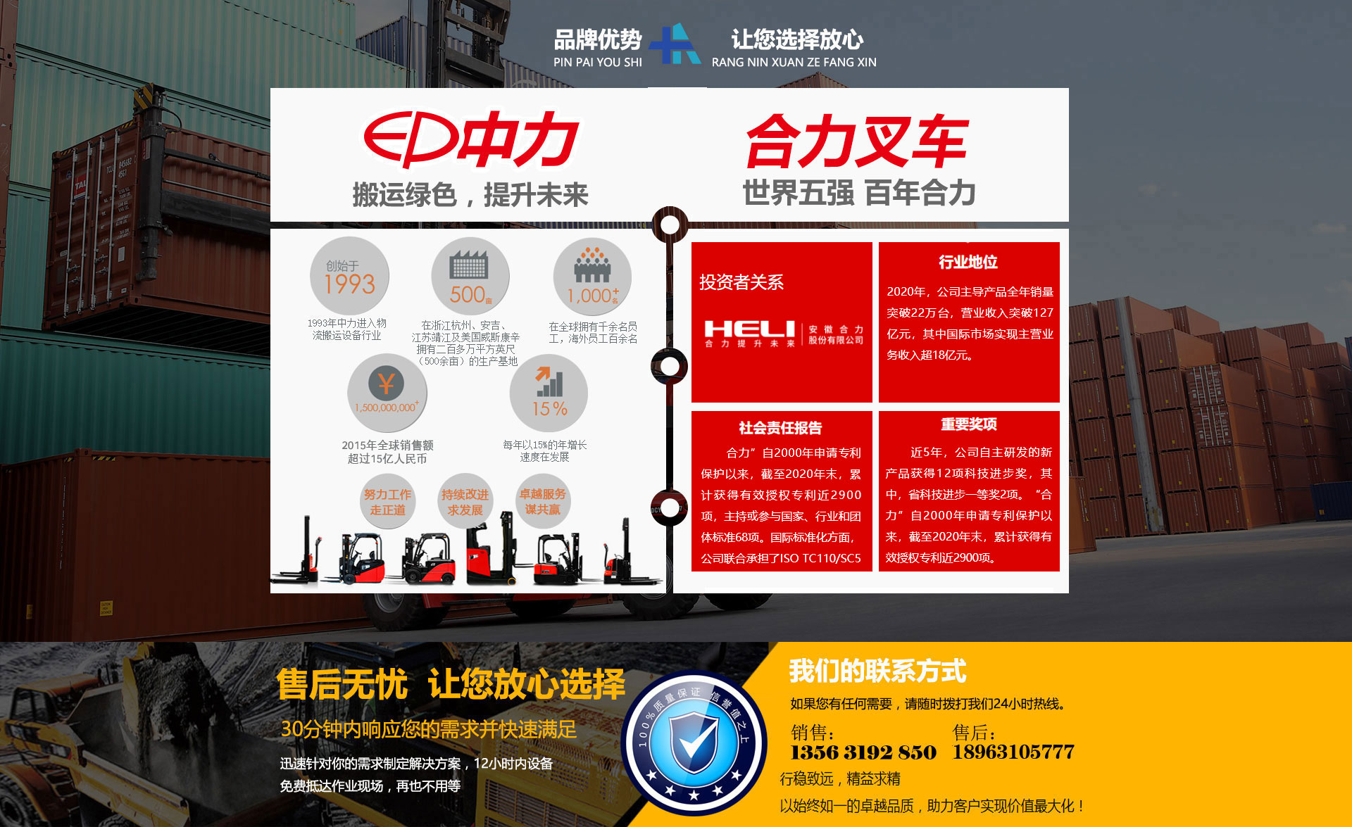 中力公司自1993年開(kāi)始進(jìn)入現(xiàn)代物流設(shè)備制造業(yè),是專(zhuān)業(yè)從事叉車(chē)及倉(cāng)儲(chǔ)設(shè)備的全球性制造企業(yè)。中力以產(chǎn)品技術(shù)創(chuàng)新,不斷滿(mǎn)足客戶(hù)定制要求而先于同行業(yè)。 榮獲德國(guó)紅點(diǎn)設(shè)計(jì)大獎(jiǎng)及美國(guó)、中國(guó)數(shù)百項(xiàng)專(zhuān)利,并因此得到了百事可樂(lè)、可口可樂(lè)、沃爾瑪、特斯拉、德邦等數(shù)百家全球500強(qiáng)企業(yè)及國(guó)內(nèi)物流龍頭企業(yè)的青睞。 ......